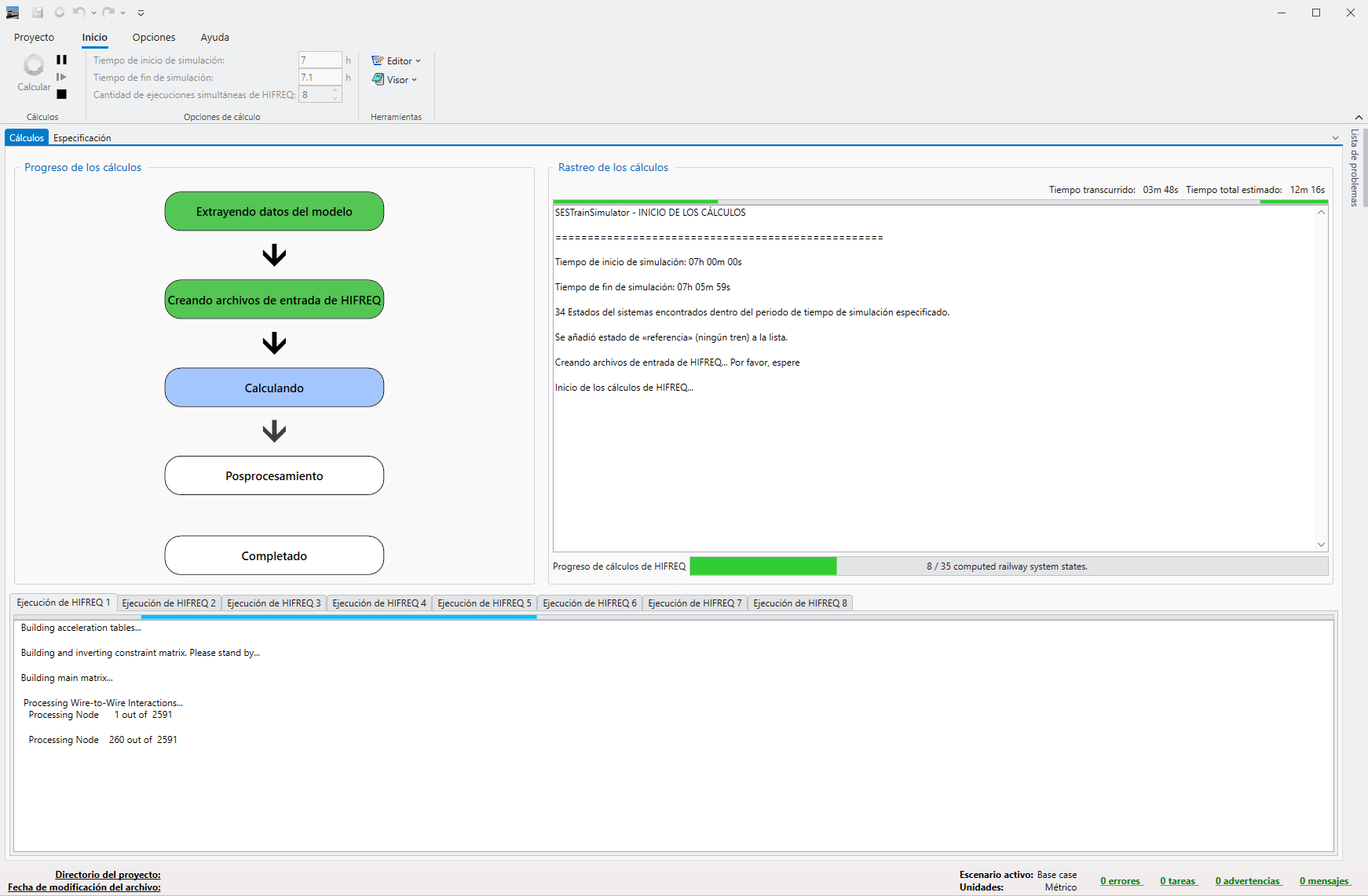 Figura 3: Se proporcionan el cálculo en paralelo de todos los estados al interior de un periodo de tiempo, el progreso del mismo y el tiempo estimado de finalización.
