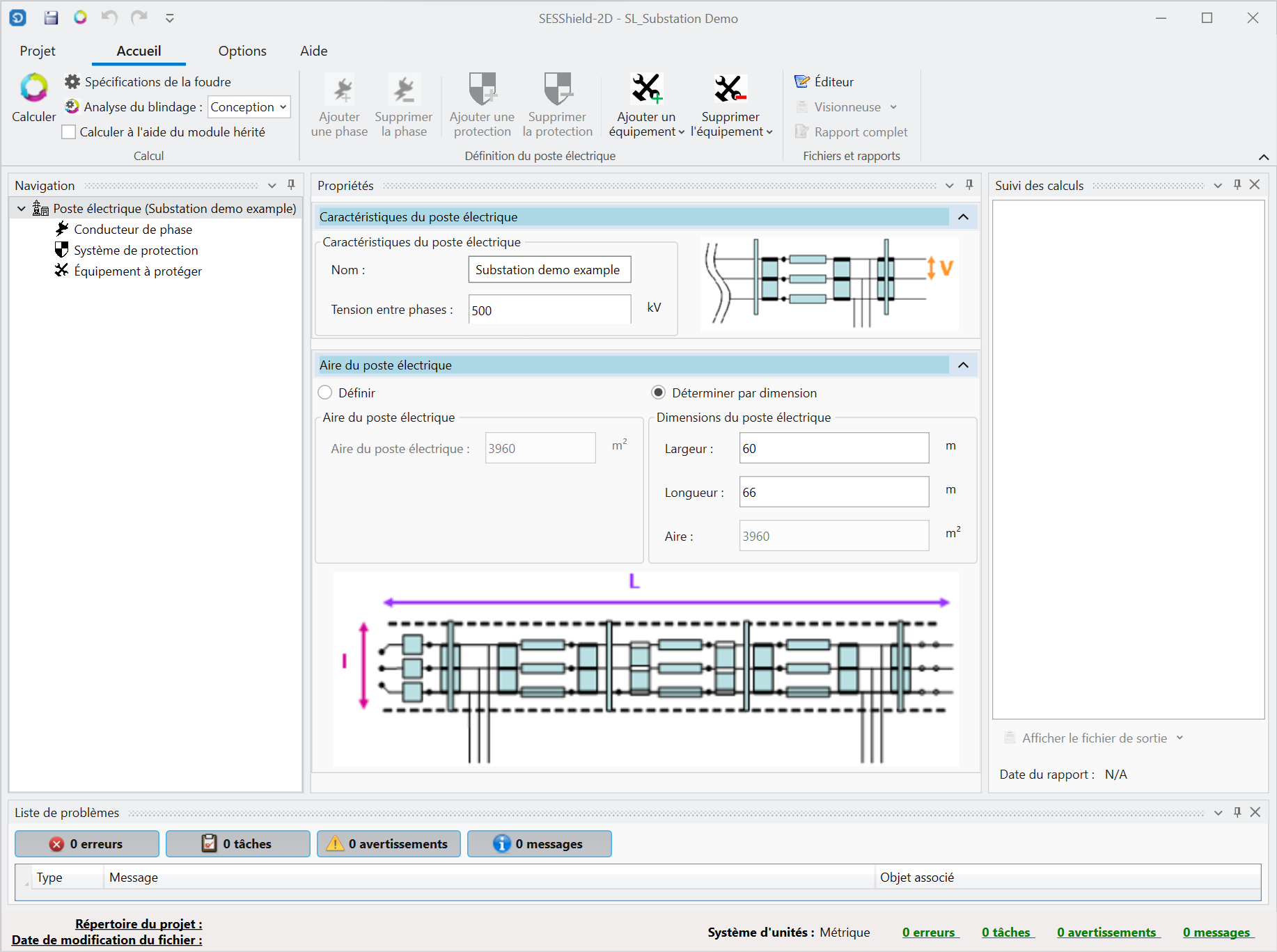 SESShield-2D offre des solutions simplifiées pour créer des systèmes optimaux de protection contre la foudre pour des postes électriques et des lignes de transport. Les analyses de protection des postes électriques et des lignes de transport se basent sur le concept et la méthode électrogéométriques de la sphère fictive, qui sont présentés dans les normes 998 et 1243 de l'IEEE et 62305 de la CEI, ce qui permet à l'utilisateur d'optimiser les emplacements et la configuration des fils de garde et des poteaux de protection afin d'éviter que les conducteurs alimentés, les barres omnibus et les équipements ne soient exposés à des foudroiements directs.
