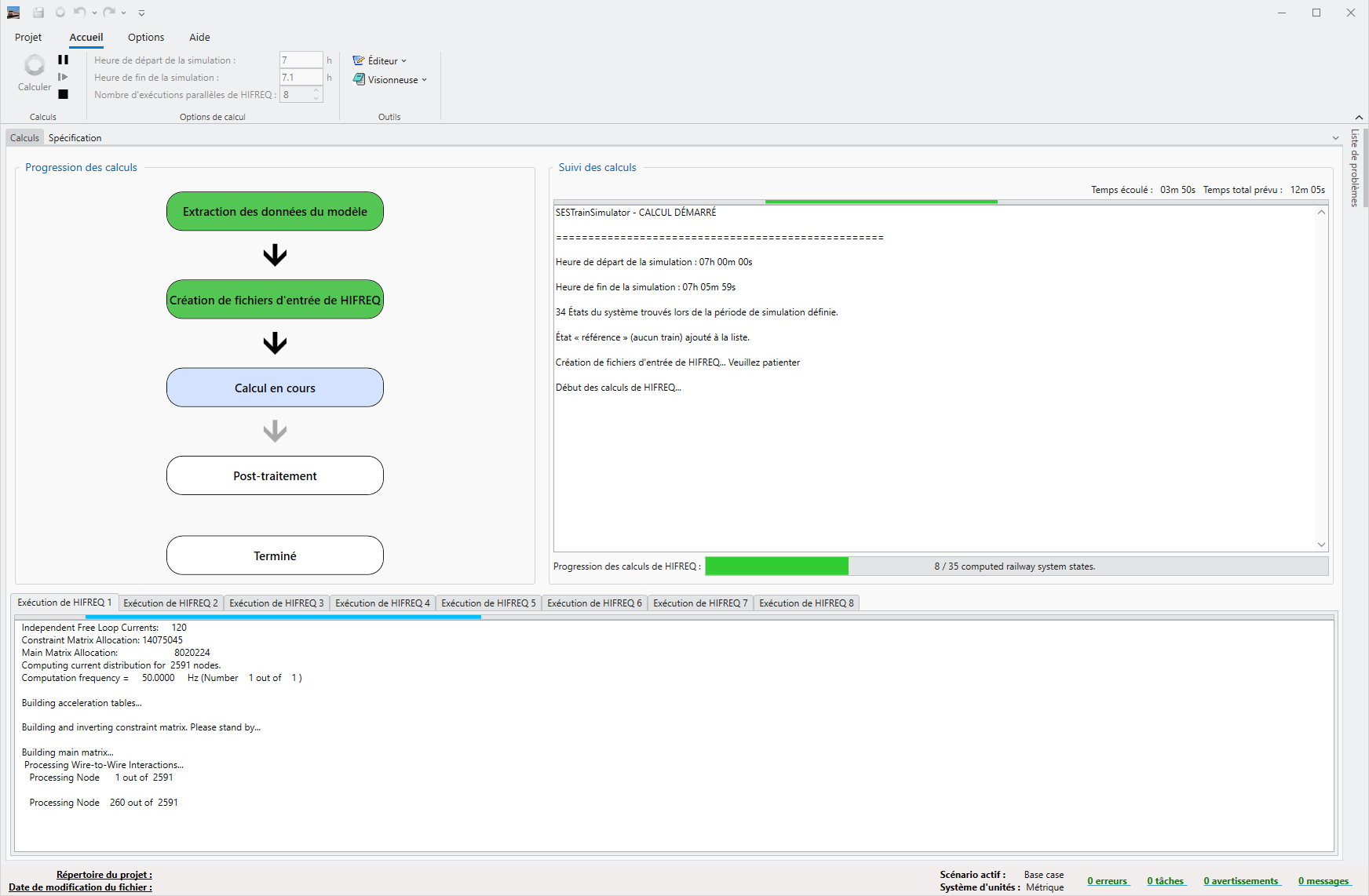 Figure 3 : Calcul en parallèle de tous les états au cours de la période de temps choisie ; la progression et le temps d'exécution prévu sont présentés